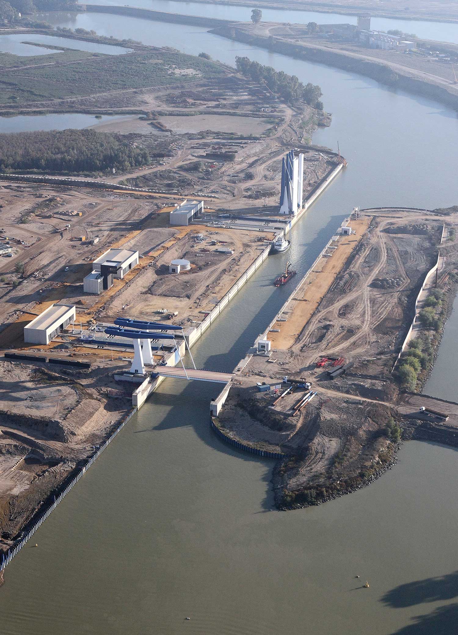 La Puerta del Mar, así se bautizó en su día a la nueva esclusa del Puerto de Sevilla, inaugurada en 2010, tras cinco años de obras y una inversión pública de más de 160 millones de euros.