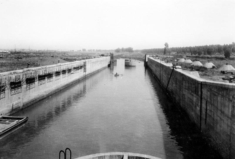 En 1974 hubo que desmontar las defensas de madera de la esclusa para que pasara el «Marcoazul», construido en Astilleros;