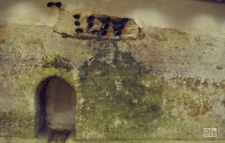 La presencia de varios grafitis realizados con carbón en la zona baja de la pared oeste de la nave excavada, así como de un muro que el extremo norte de la misma, permiten pensar que en un momento previo a la destrucción de las bóvedas y posterior a la interrupción del suministro de agua se produjese un proceso de ocupación secundaria del edificio.
