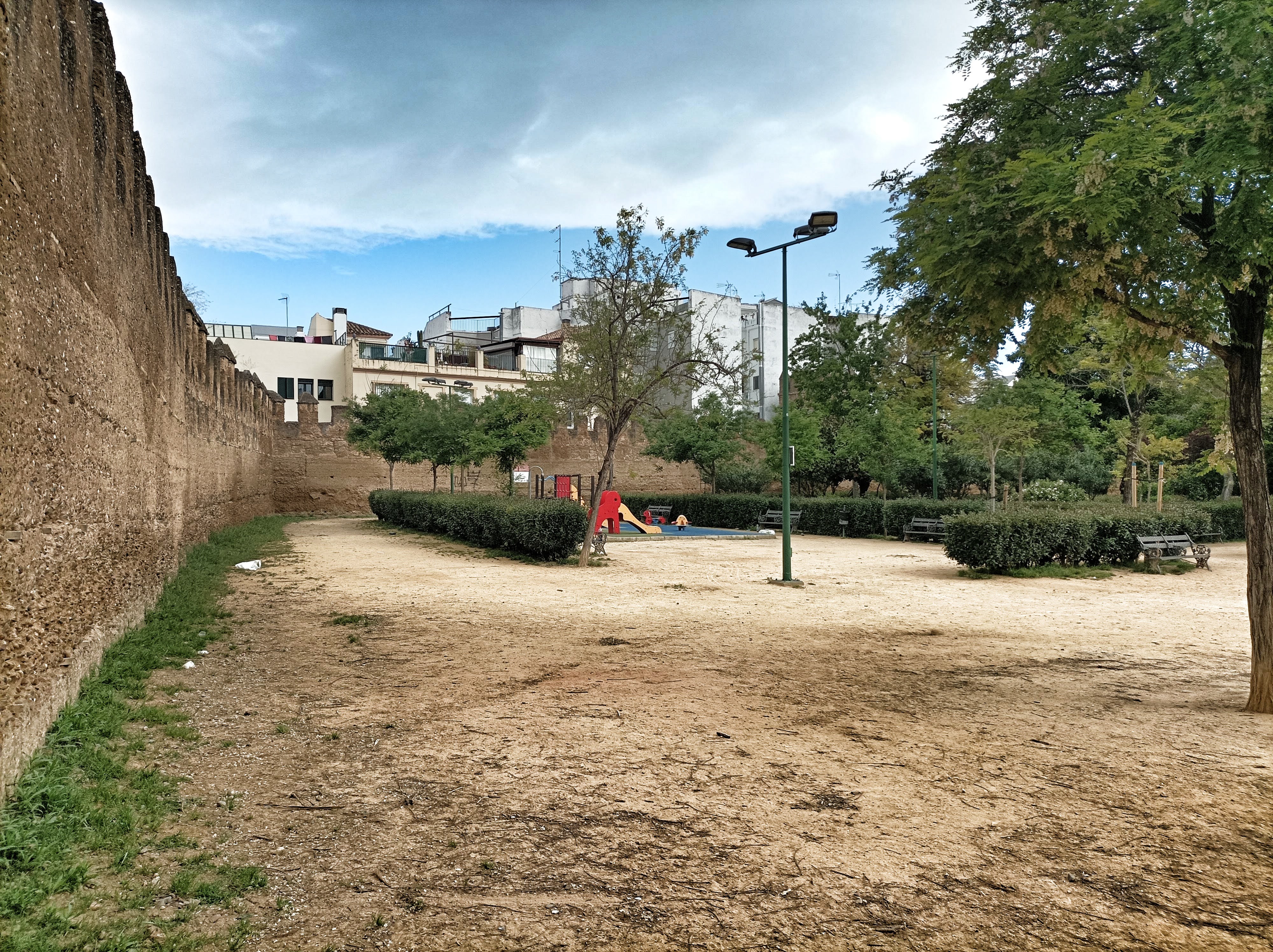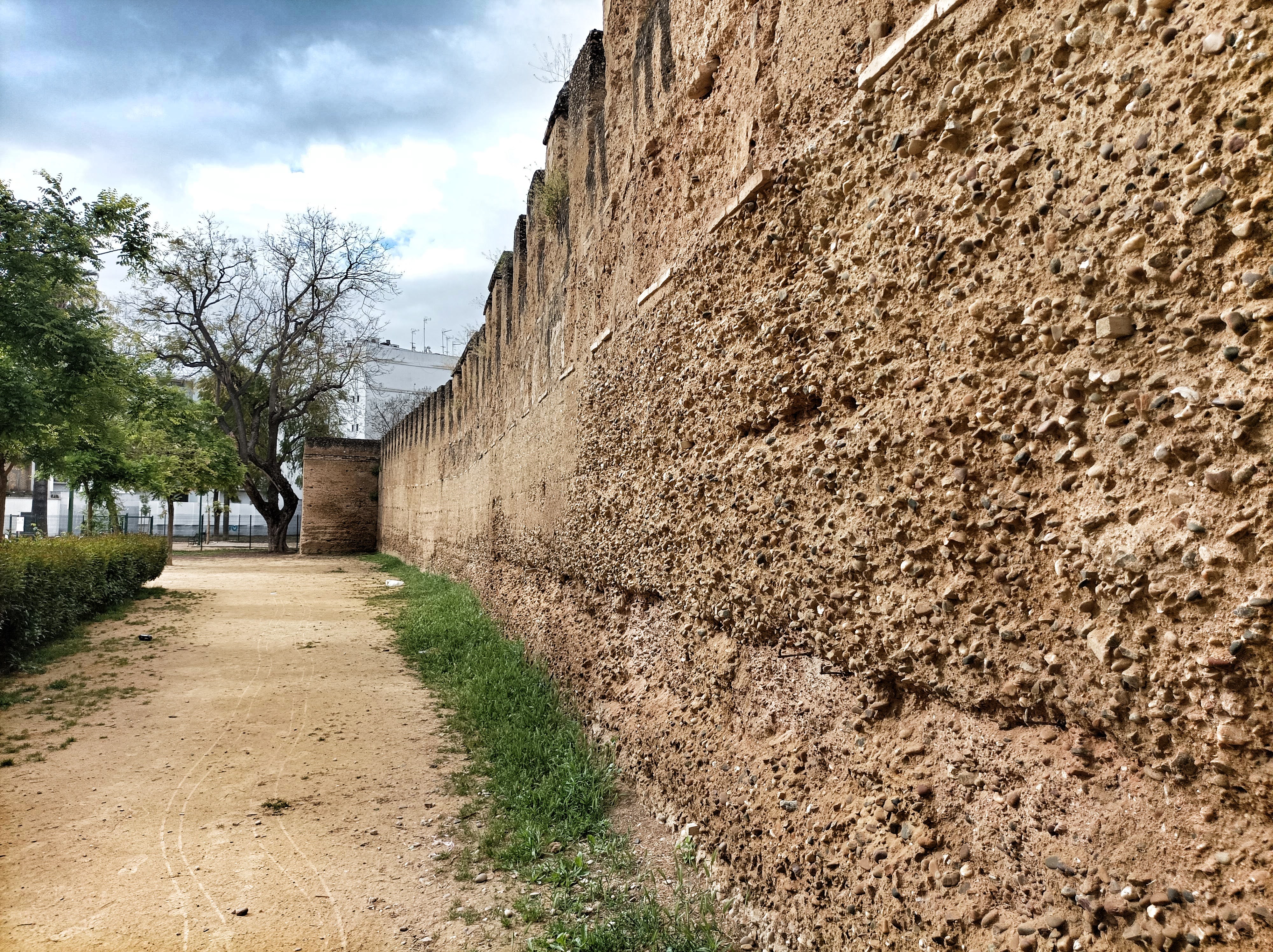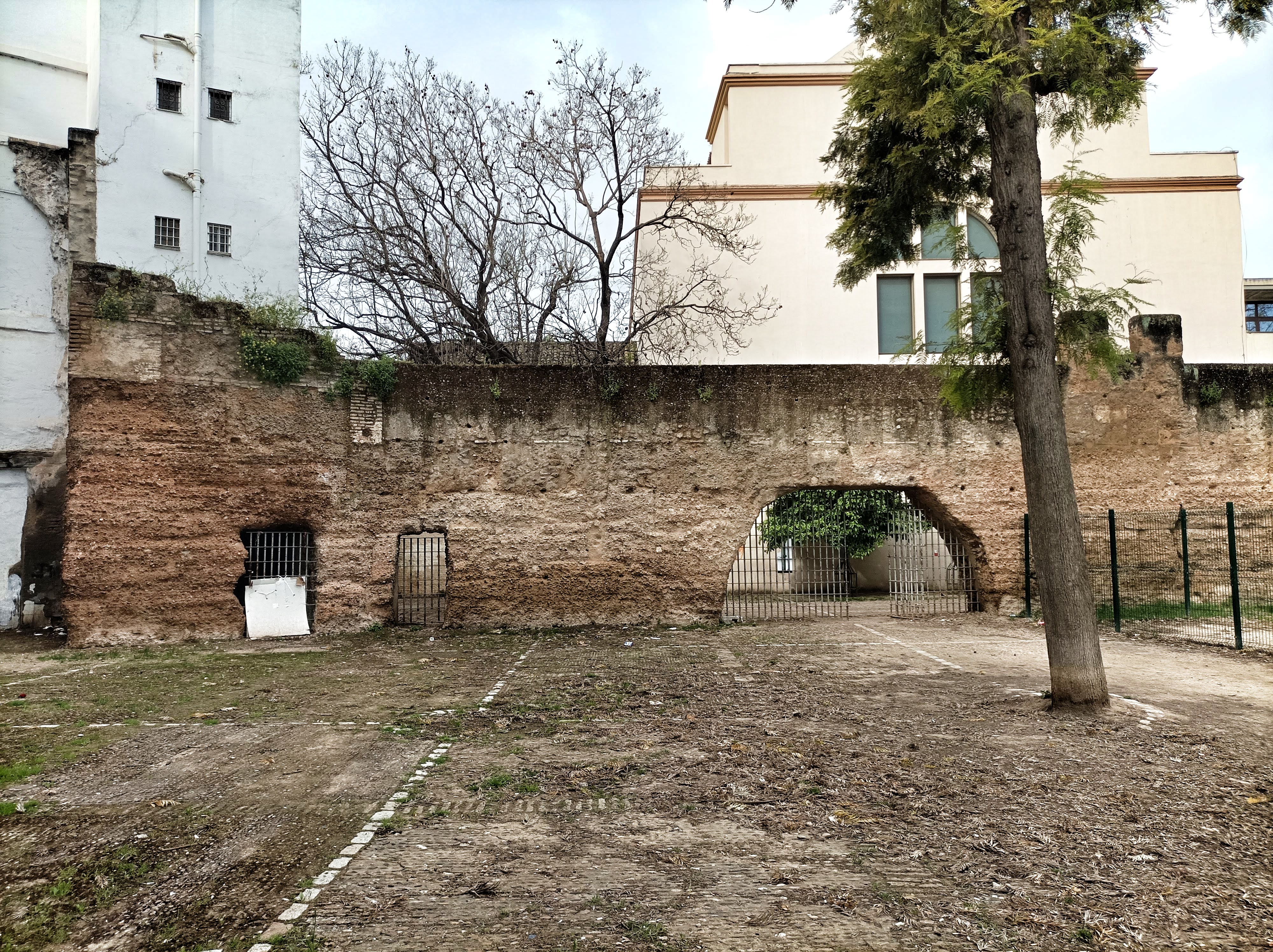 La muralla de este tramo, que mide unos 322 metros aproximadamente, tiene la misma tipología que la muralla de la Macarena, aunque sin la barbacana, quedando solo la cerca. El estar enterrada más de 3 metros, puede explicar que la barbacana no este atestiguada.