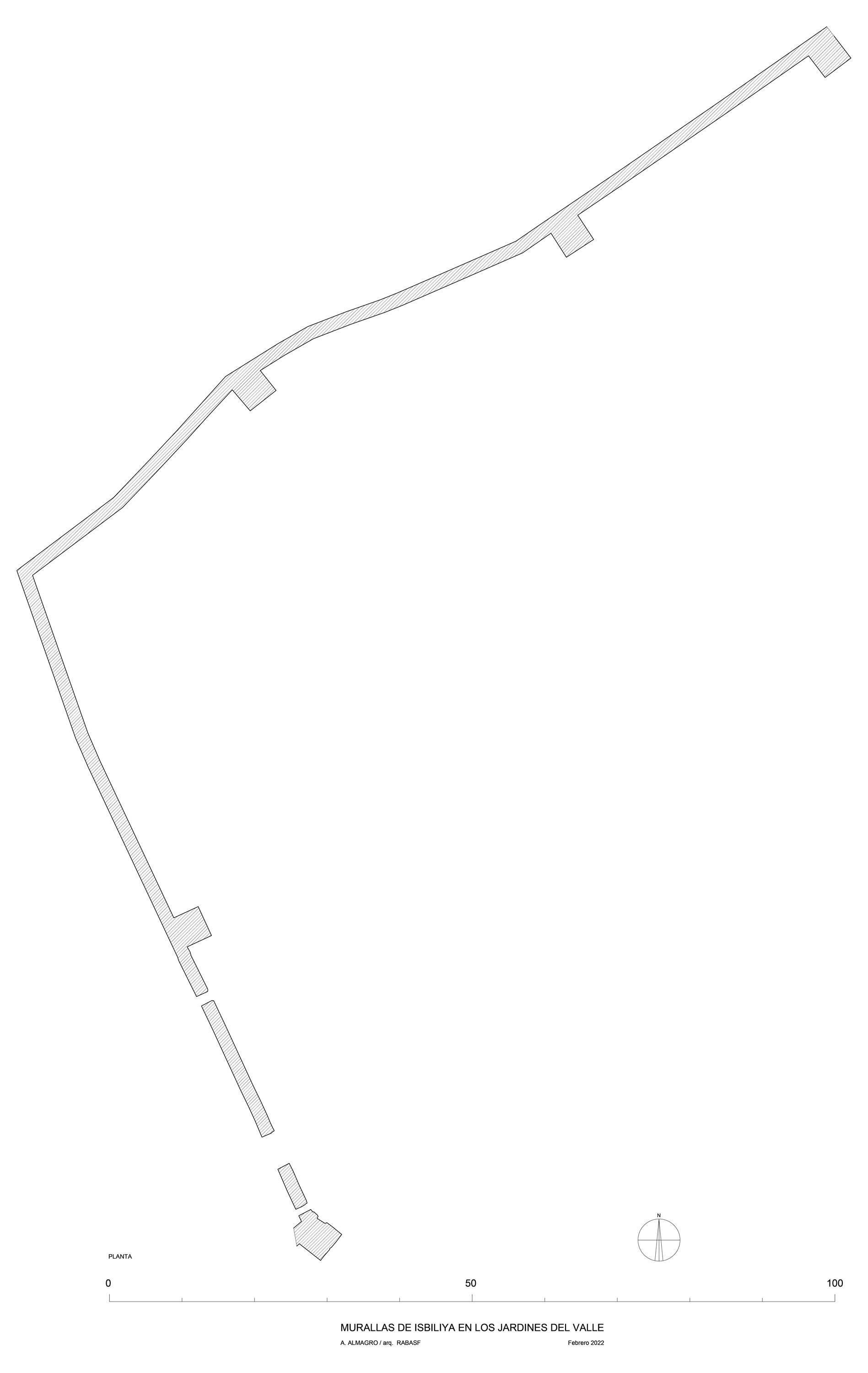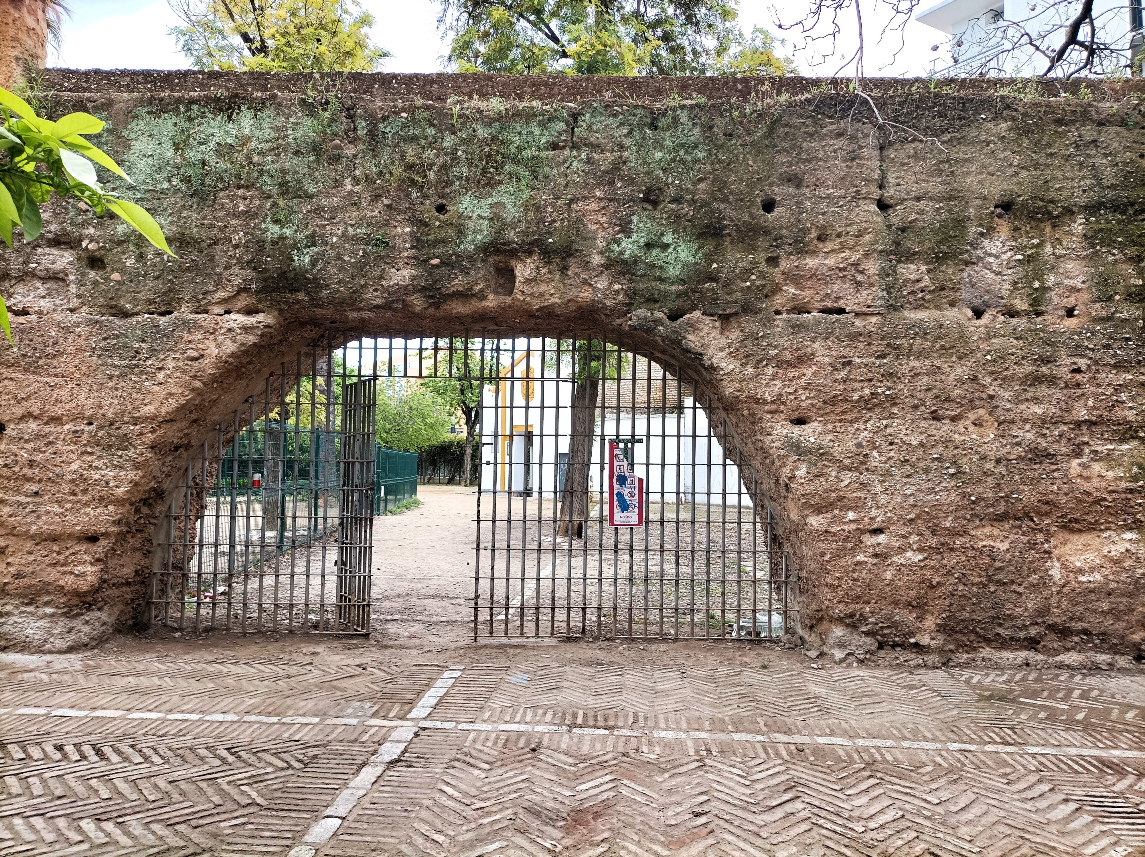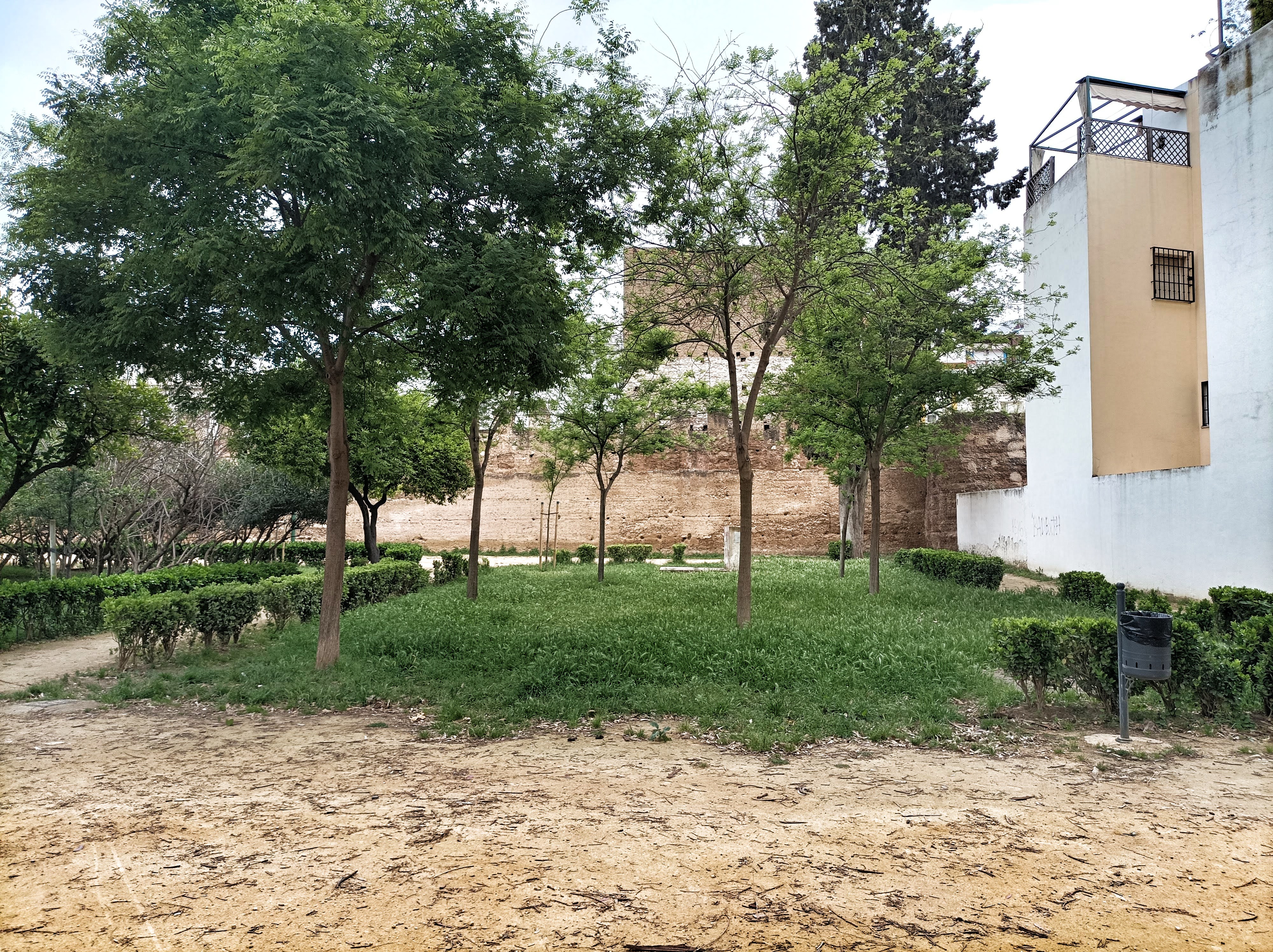 La muralla de este tramo, que mide unos 322 metros aproximadamente, tiene la misma tipología que la muralla de la Macarena, aunque sin la barbacana, quedando solo la cerca. El estar enterrada más de 3 metros, puede explicar que la barbacana no este atestiguada.