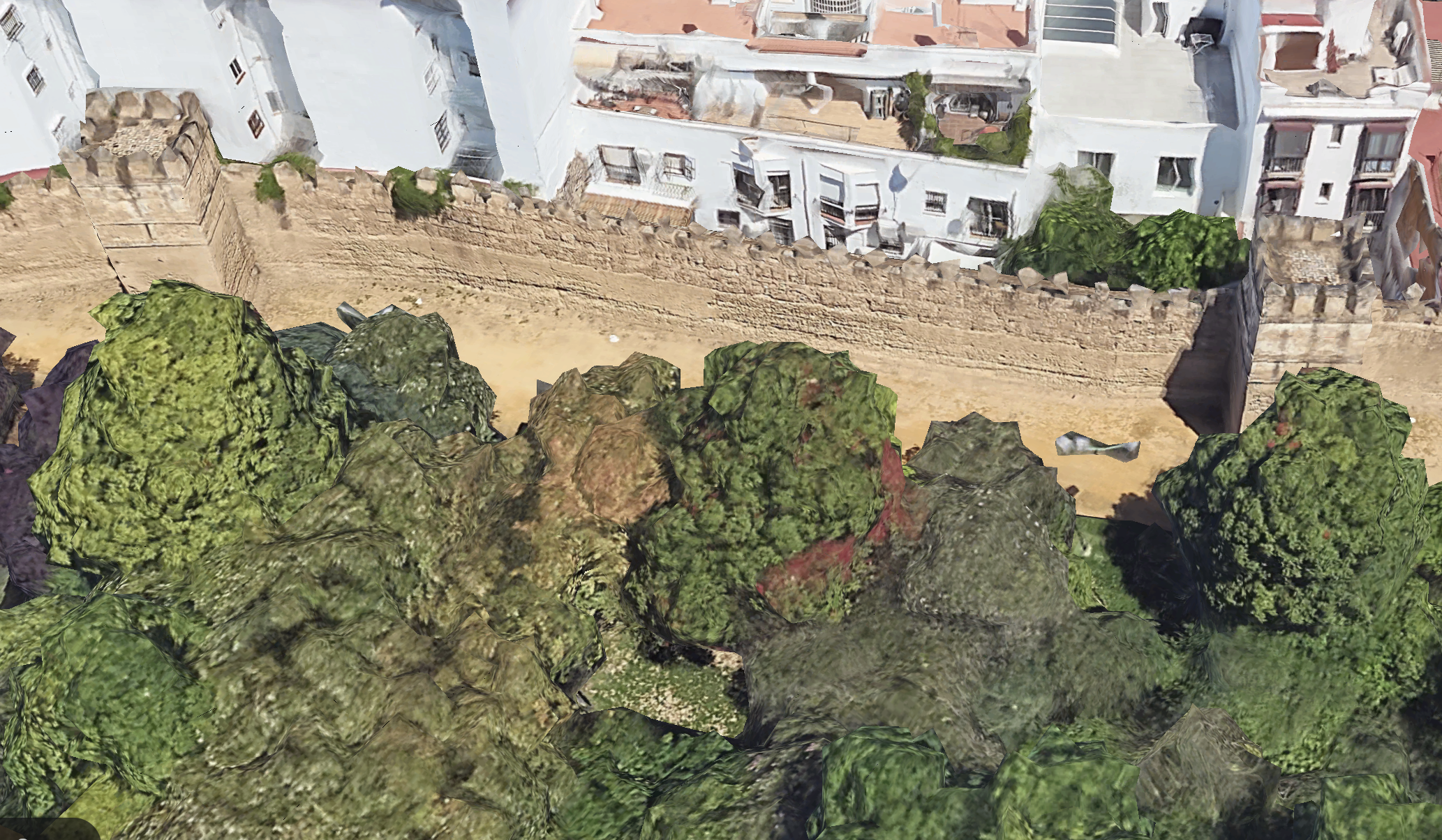 Están documentadas dos fases superpuestas, una almorávide y otra almohade, que conservan hasta el enlucido del primer parapeto y muchos merlones, como se advierte en el levantamiento.