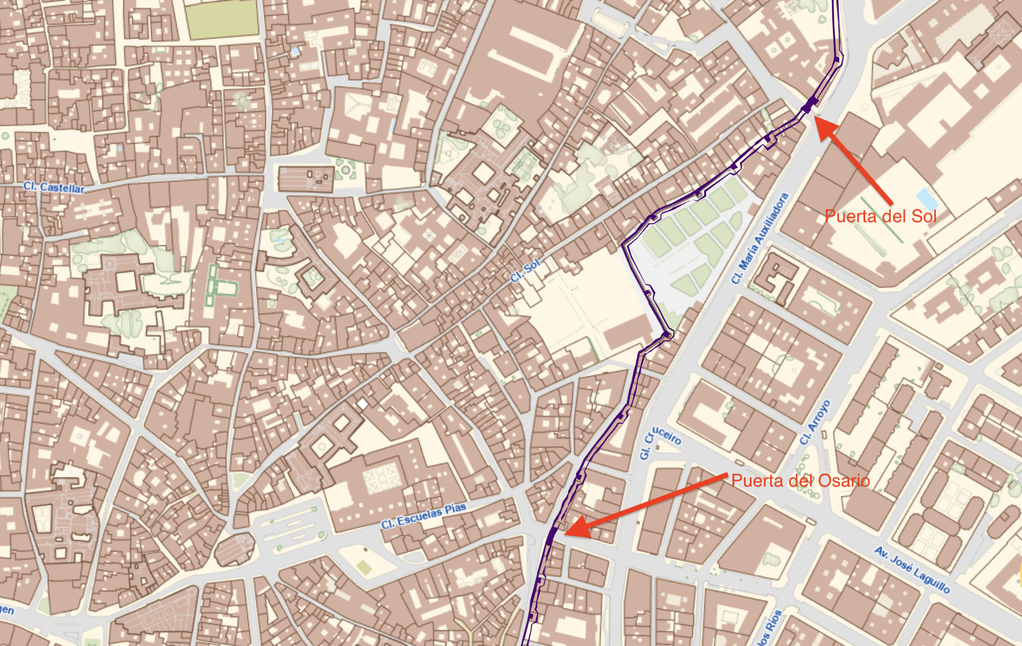 Muralla exterior: >> Puerta del Osario – Puerta del Sol <<