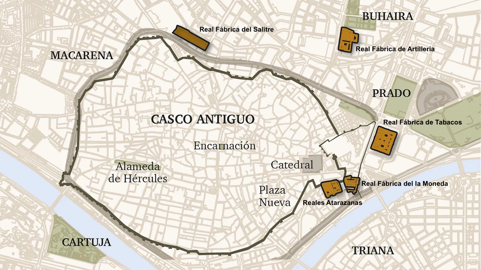 […] importantes industrias en Sevilla, siguen hoy en pie: Artillería, Atarazanas, Casa de la Moneda y Fábrica de Tabacos.Una quinta, la Real Fábrica de Salitre, es la única que no ha […]