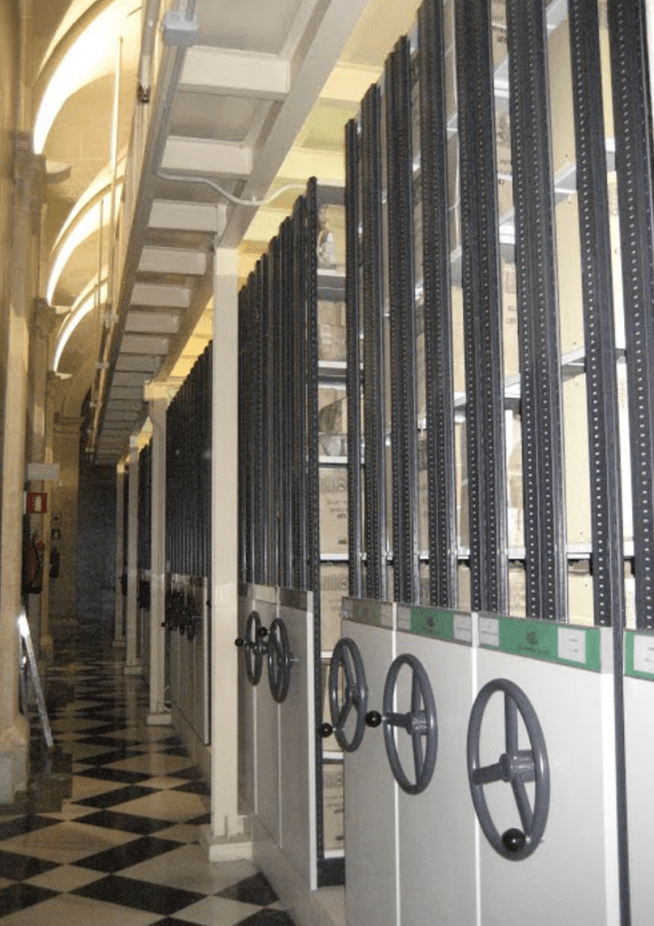 La rehabilitación supuso la instalación de la documentación en tres grandes depósitos en la planta baja del edificio, a doble altura y la apertura de las tres galerías exteriores de la planta alta, con la restauración de las estanterías de caoba diseñadas por Blas Molner.