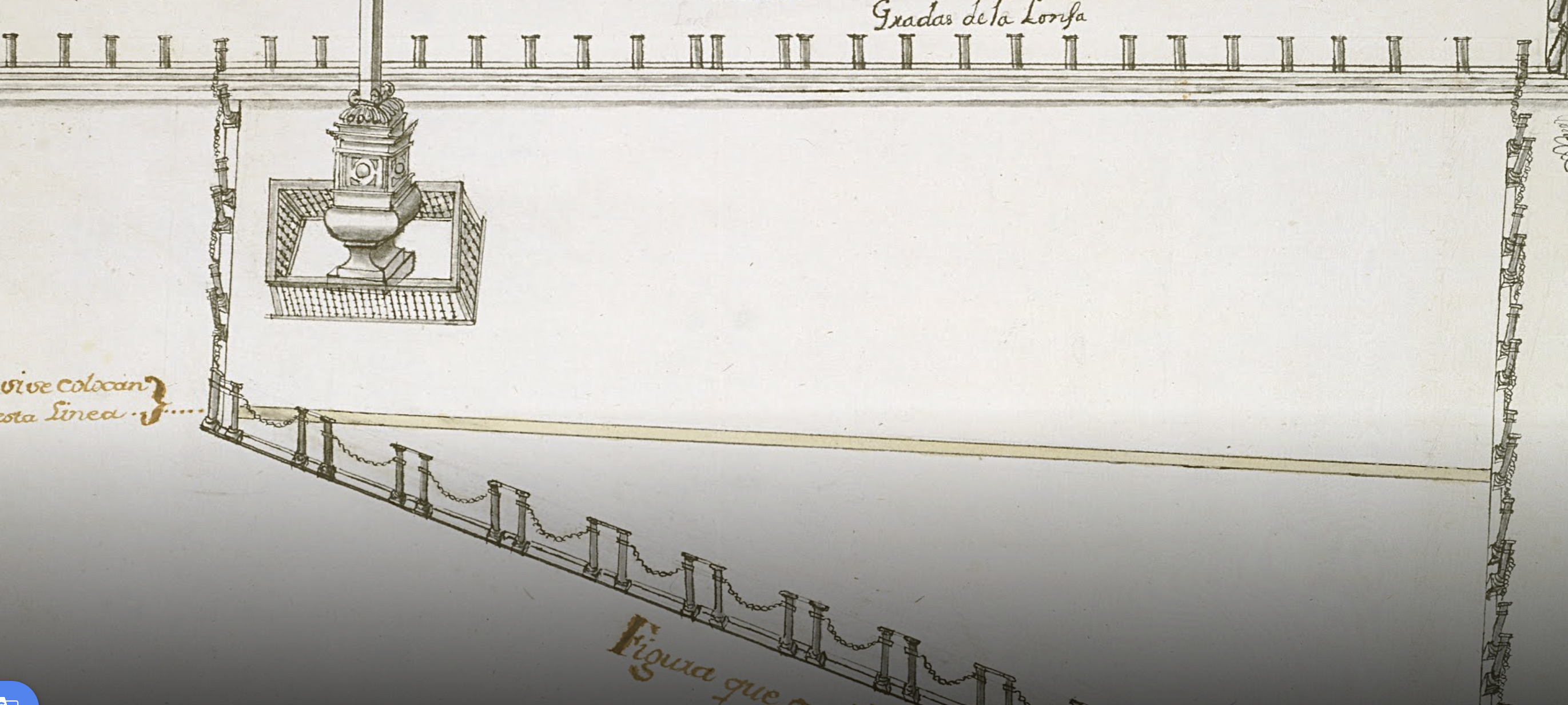 En 1607 se da orden para poner una “vela” en el patio a fin de paliar el excesivo calor del verano y, posteriormente, se decide acotar con cadenas el espacio existente entre el nuevo edificio y el Templo.