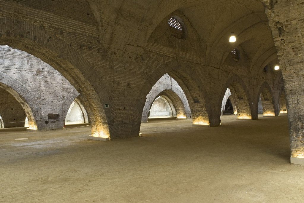 Las Reales Atarazanas de Sevilla son las mayores y más antiguas que se conservan en España y una de las más importantes del mundo. Fueron edificadas en 1252 por orden de Alfonso X el Sabio para la construcción de galeras con el fin de combatir a los musulmanes norteafricanos -“la gente pagana“-; ubicándose fuera del recinto amurallado y muy cerca del Guadalquivir, en la zona comprendida entre la Torre del Oro, la Torre de la Plata, y la Puerta del Carbón y Postigo del Aceite…….