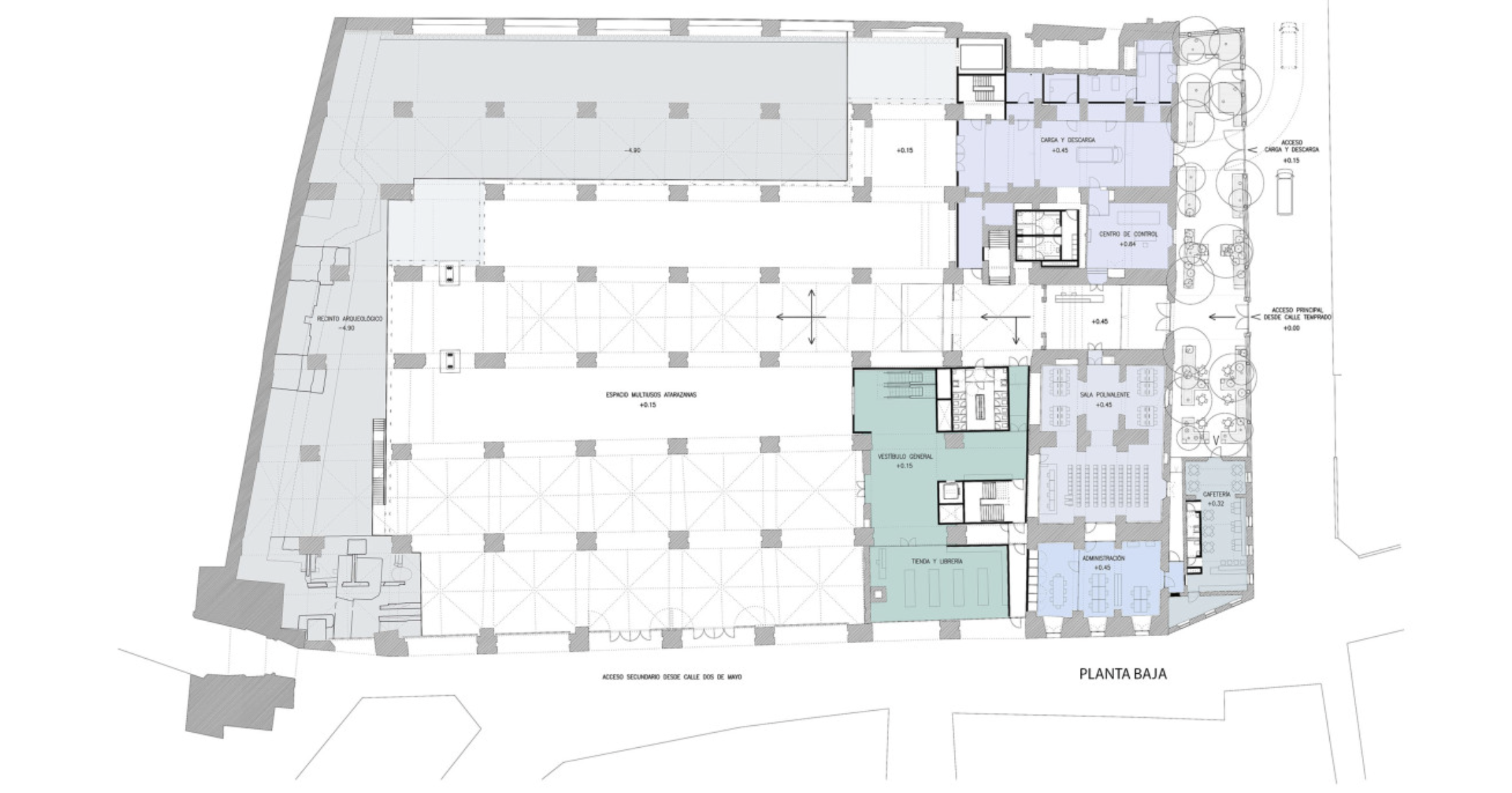 El nuevo proyecto, obra del arquitecto Guillermo Vázquez Consuegra, recupera el monumento para el siglo XXI con un uso cultural absolutamente compatible con los valores del monumento que incluye, fundamentalmente, el recinto arqueológico excavado y el espacio libre de las atarazanas para la visita cultural, una sala polivalente con usos didácticos en planta baja y espacios expositivos en planta primera.